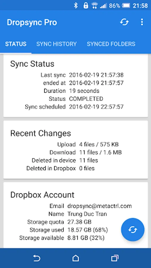 Please check out our website (http://metactrl.com/) for more information about the app, including User's Guide (http://metactrl.com/userguide/) and FAQ (http://metactrl.com/faq/). If you run into any issues or have suggestions for improvements, don't hesitate to email us at dropsync@metactrl.com. We will do our best to assist you.