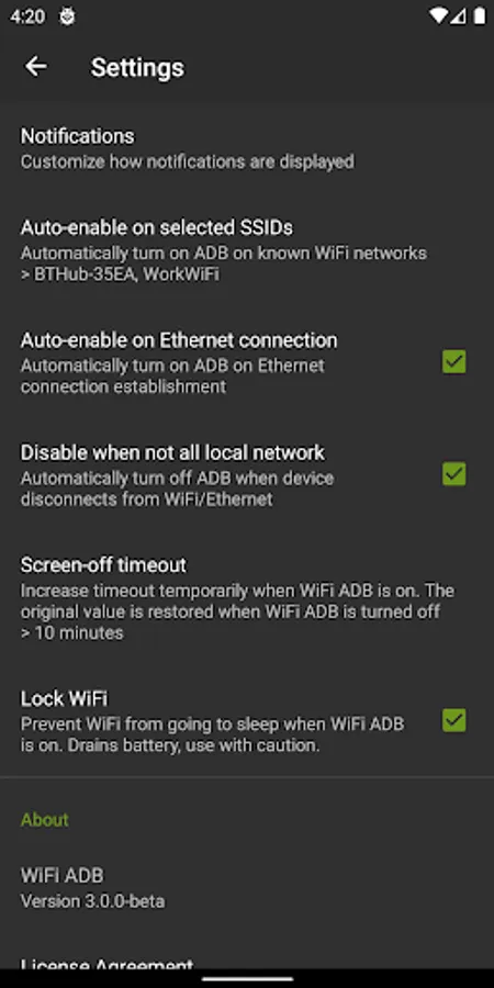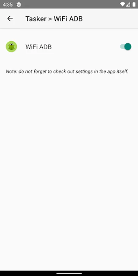 • Also acts as a Tasker plugin. Users can configure Tasker app to automatically turn on/off WiFi ADB based on defined conditions