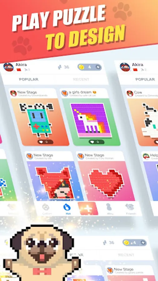 * DIY Puzzle Game: You can draw a cute picture with pixel art as you like. Many hot puzzles are created by users. Try it now! May be you are an excellent artist.