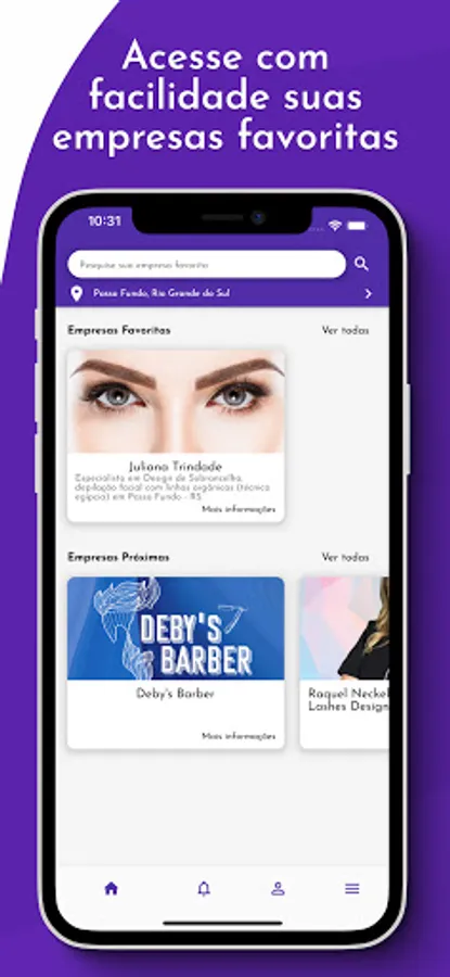Our app uses a clear and objective language, that is, when opening Tua Agenda it is easy to locate the company/professional, select the service, schedule an appointment, and view important information such as price or service details.