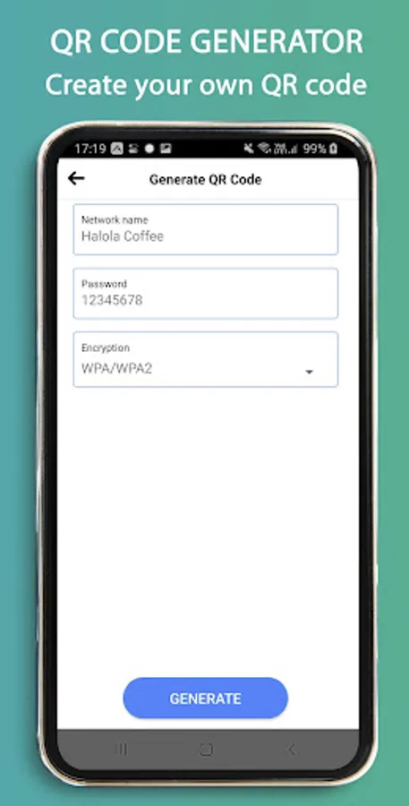 QR code, barcode generator: choose your QR code type > Enter the field > Click generate.