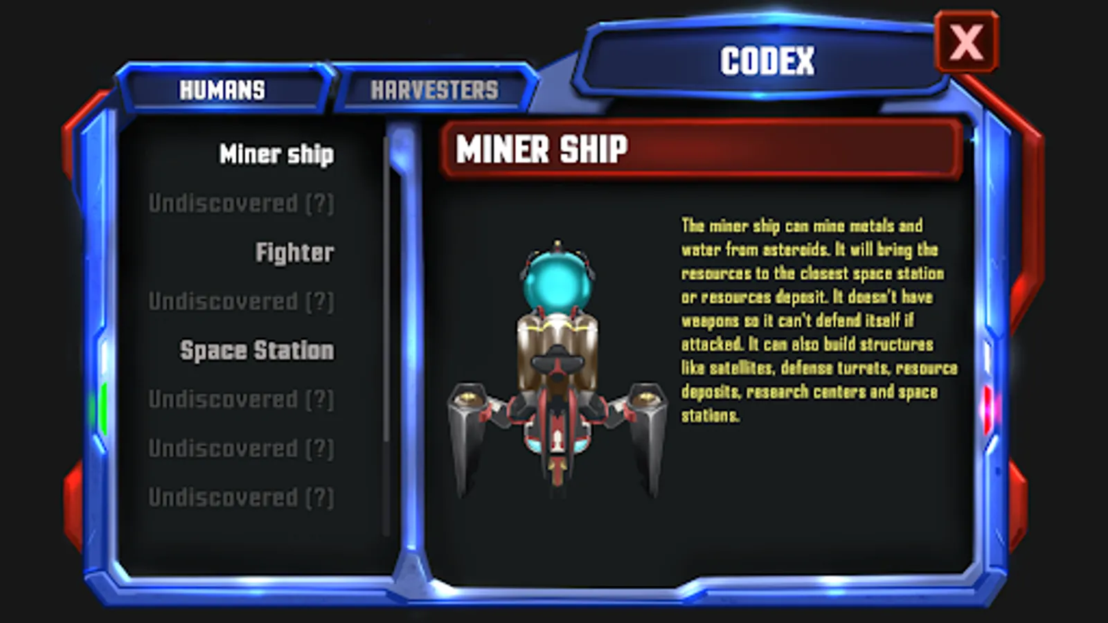 - Resource mining and management: Use miner ships to mine water and metal from asteroids. Miners will bring the resources to the closest Space Station or resource deposits. Use them to build your ships, bases and for upgrades.
