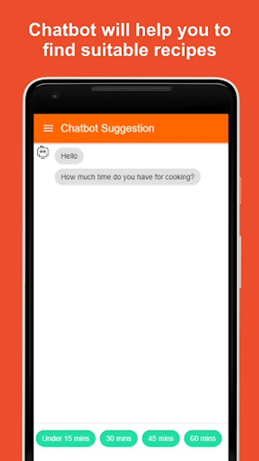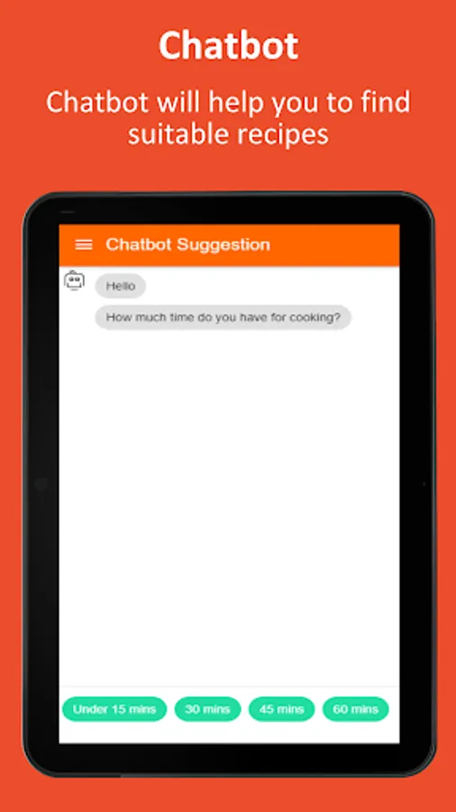 Still wonder which recipes to cook? Don't worry, we have chatbot to suggest you base on your time required. We will improve chatbot in the future so it can suggest you by ingredients also.