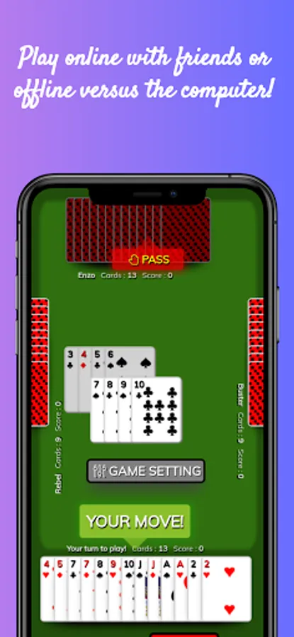 Tien len or "Tiến lên" is a classic Vietnamese card shedding game, now available for your mobile device.