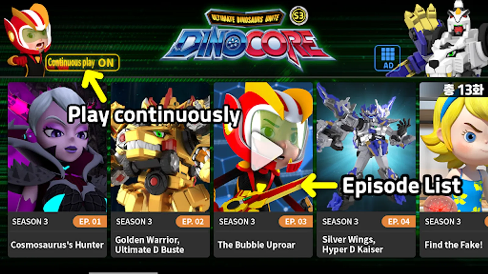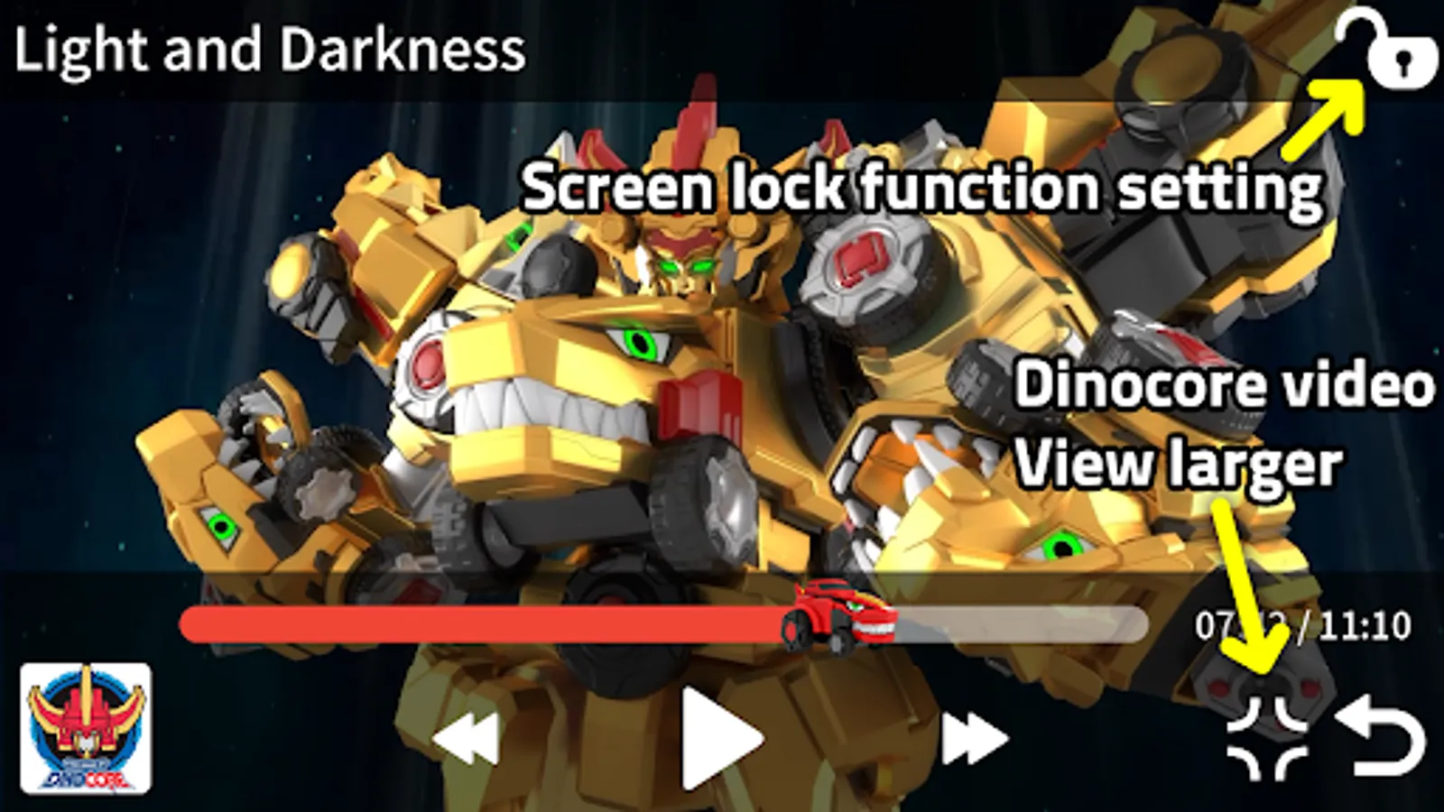 Together with the DinoCore, he protects the Earth from the Darkno.