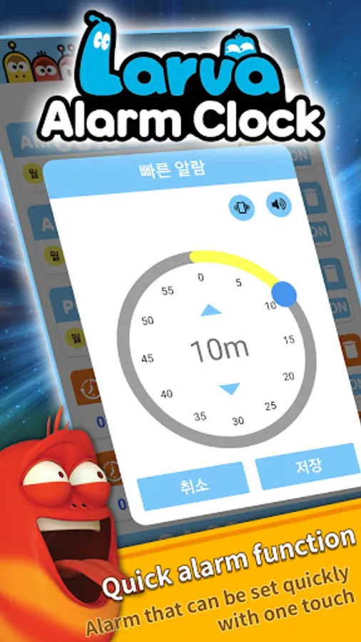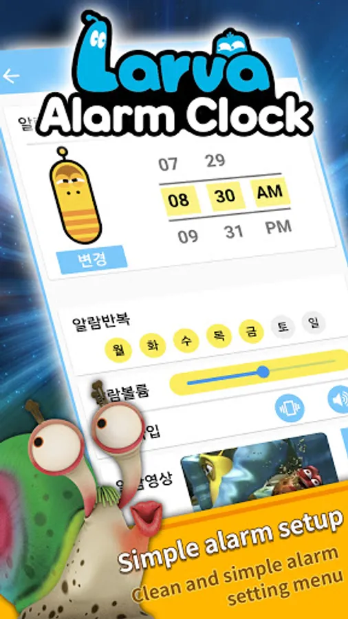 It is an application that allows you to set an alarm with a cute and comical Lava character video.