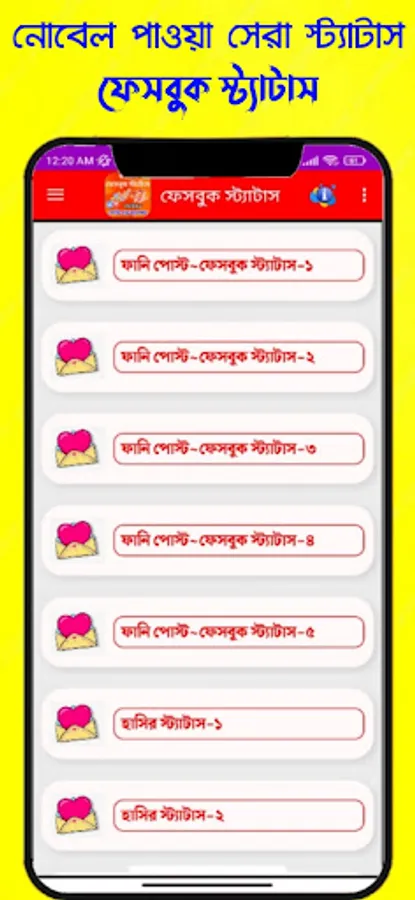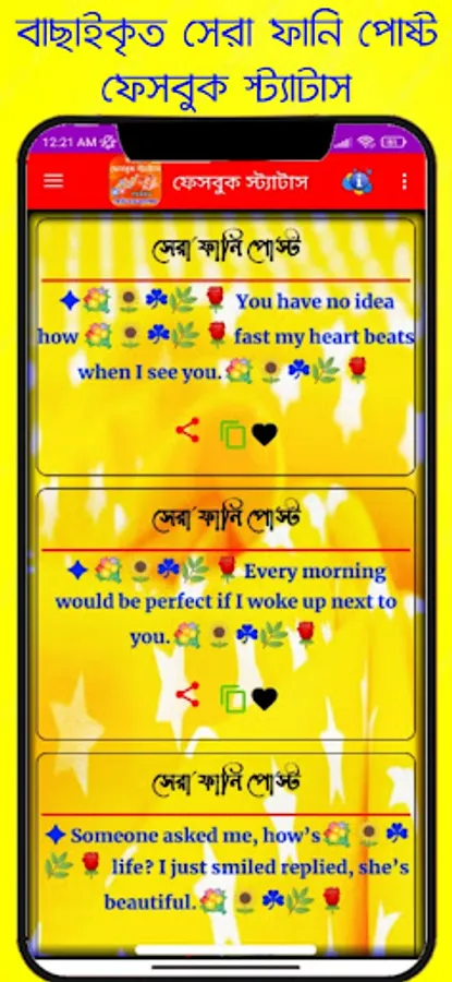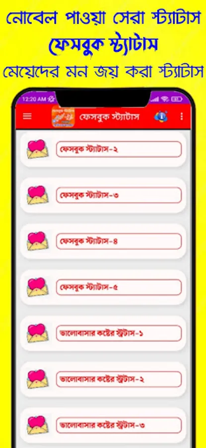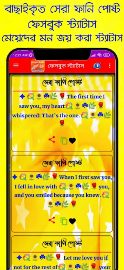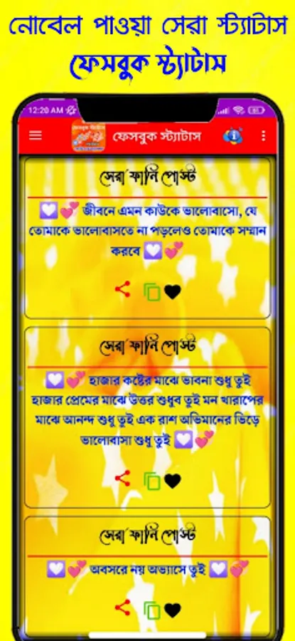 আপনাকে আর কষ্ট করে মজার মজার স্ট্যাটাস খুজতে হবে না এই অ্যাপসটিতে আছে অনেক অনেক মজার স্ট্যাটাস আর ক্যাপশন।