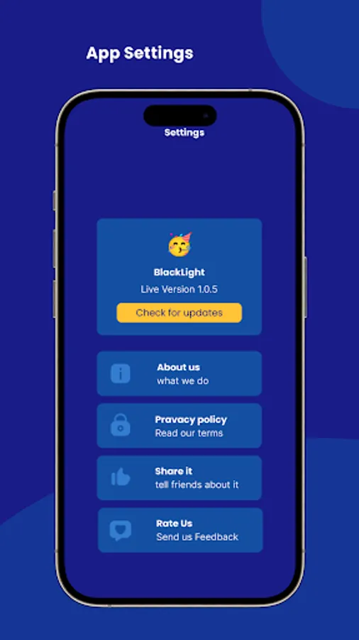 Black Light UV Light Party app is the ultimate tool for creating a fun and festive atmosphere at any event. With just a few taps on your smartphone or tablet, you can transform any room into a dazzling disco with our Black Light UV Light Party effects. Choose from a wide range of black lights party lights, including flashing strobes, multicolored beams, and mesmerizing kaleidoscopes. You can also customize your light show by selecting your favorite colors and adjusting the speed and intensity of the effects.