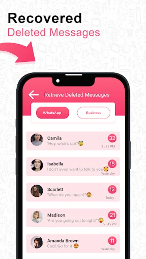 Backup and recover deleted messages, see deleted WhatsApp messages with recoverx. Read unsent message messenger and download status from WhatsApp.