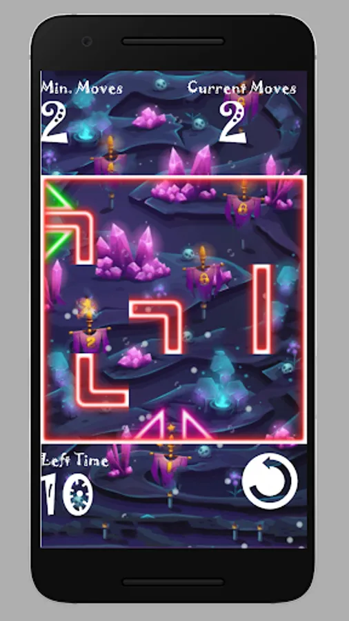 In this mode the main opponent is the time. It starts with an easy level and ten seconds of time. For each solved level the player gets the rest of his left time in addition to an extra bonus for the next one. Each level is auto-generated with an increasing difficulty.