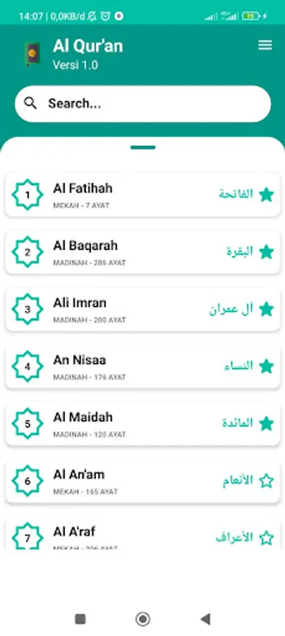 1. Name of Surah (Indonesian or Arabic)