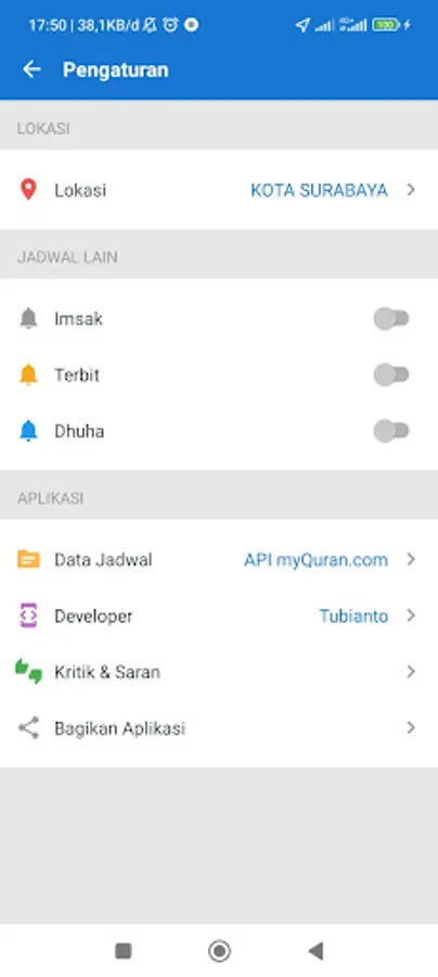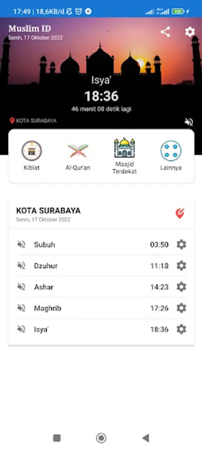 Applications that provide information on prayer times in all cities/districts in Indonesia