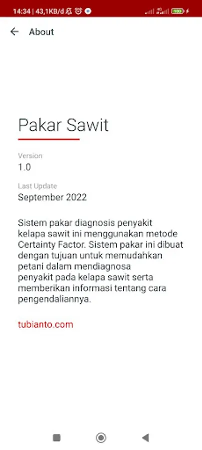 This expert system for diagnosing oil palm diseases was made using the Certainty Factor Method. The purpose of making this Palm Oil Expert application is to make it easier for farmers to diagnose diseases in oil palm and provide information on how to control them.