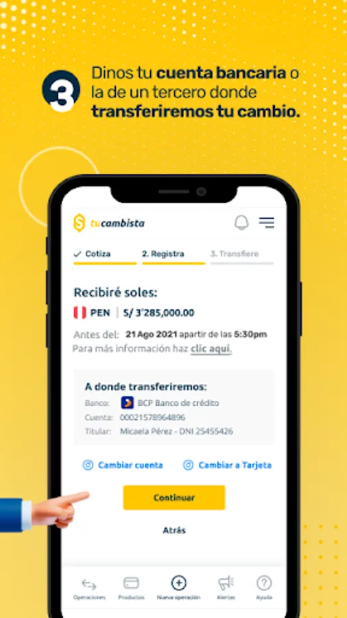Change your dollars and soles from your cell phone from wherever you are through our mobile application. Forget queues, leaving home or your office and wasting time. Change quickly, safely and at the best price in Tucambista.