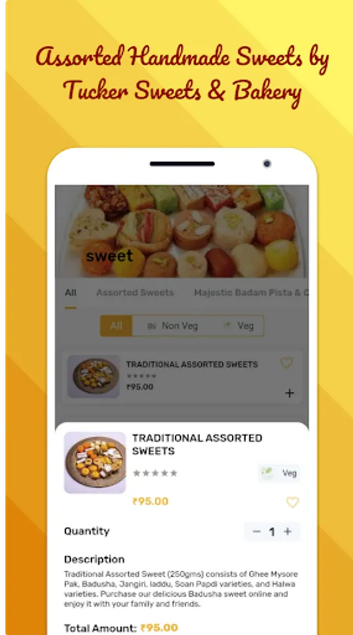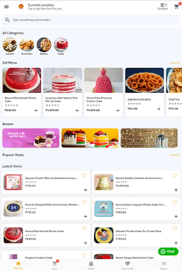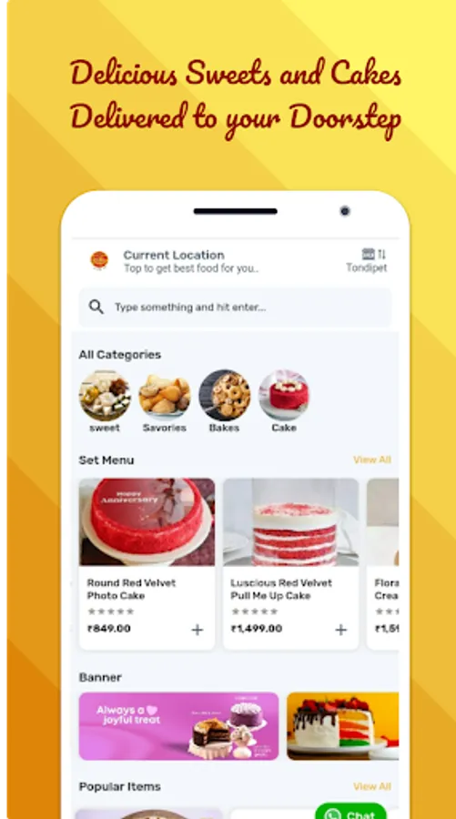 Order your favourite sweets and birthday cakes via our application at any time we will deliver it to your doorstep.(Applicable within Chennai)