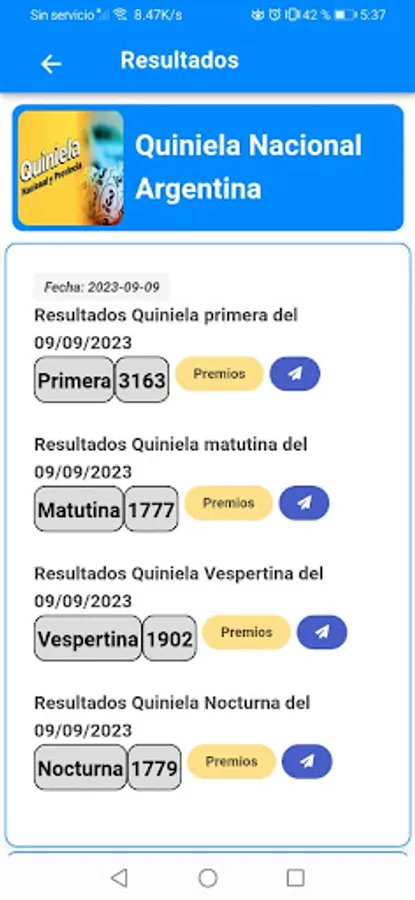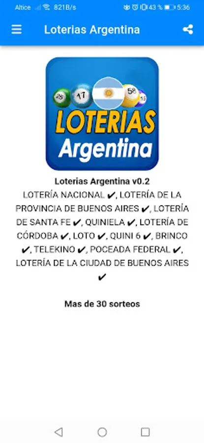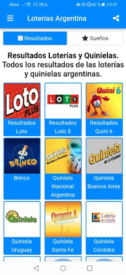 Latest lottery results from Argentina and all of South America: NATIONAL LOTTERY ✔, PROVINCE OF BUENOS AIRES LOTTERY ✔, SANTA FE LOTTERY ✔, QUINIELA ✔, CÓRDOBA LOTTERY ✔, LOTTO ✔, QUINI 6 ✔, BRINCO ✔, TELEKINO ✔, FEDERAL POCKET ✔, BUENOS AIRES CITY LOTTERY ✔. Find all the information you need about lotteries in Argentina. Check your ticket or check the results of previous draws to see if you've won the jackpot.