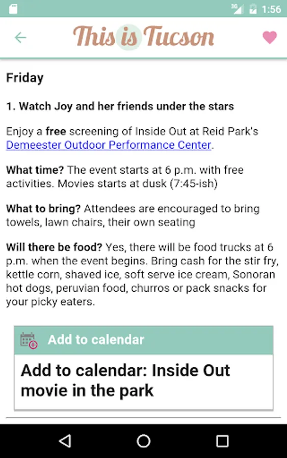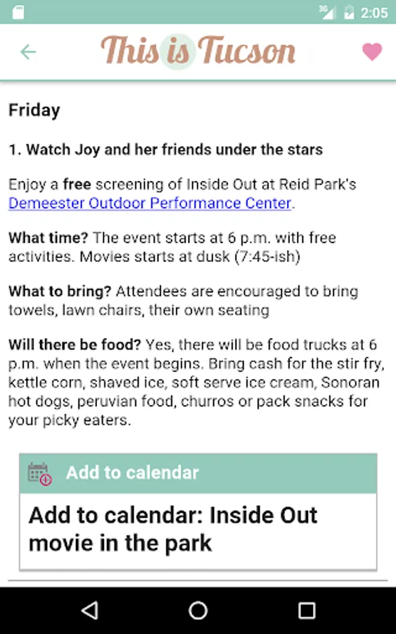 We are your Tucson BFF — making sure you and your family don¹t miss out on the best things to do or best things to eat all over town. We get all the details right: where the best bathrooms are for changing a toddler, how to have fun when your flip-flops melt to the sidewalk, where to get a snack before someone gets hungry, where to pick up the best local iced coffee. Let us help you find a surprise in your hometown — all on your