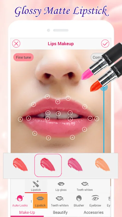 Touch up your selfies with quick and powerful features and get great results, adjust and fine-tune your makeup details as you like.