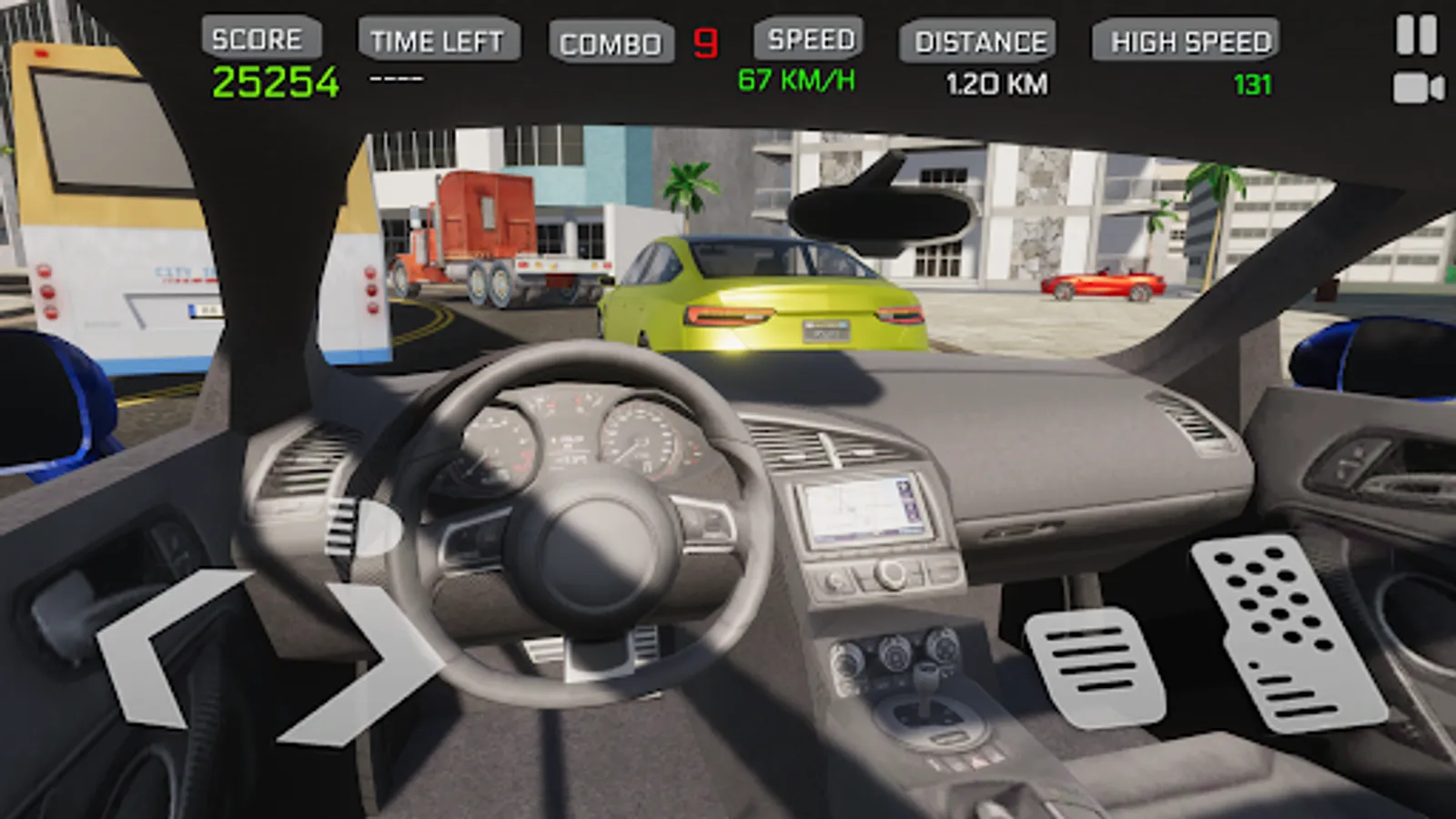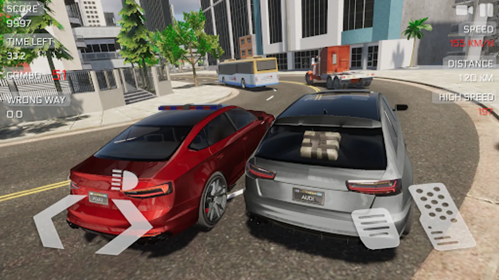 - Driving in opposite direction in two-way mode gives extra score and cash!
