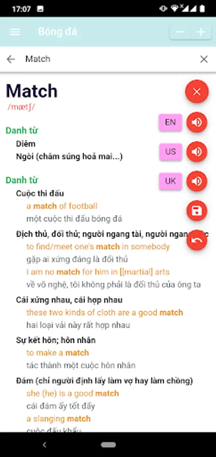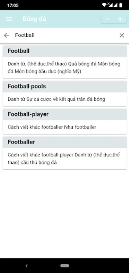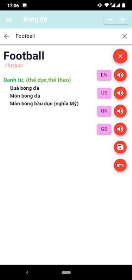 The football dictionary provides many football-specific words to help users quickly look up the terms, the program runs fast, smooth, contains no ads with many outstanding features and advantages: