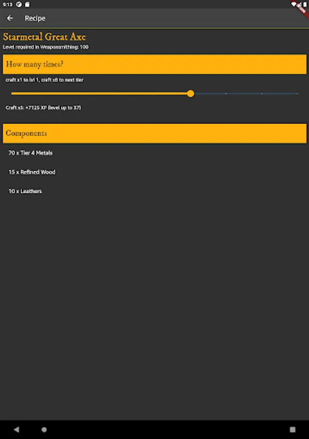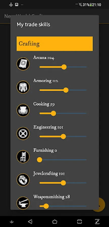 New World Crafter is a companion app for Amazon Studios game "New World". This app lists all the recipes available in game, what materials are needed and how many times you need to craft them to level up to the next tier.