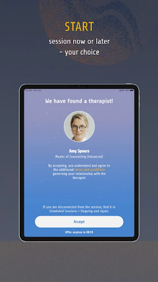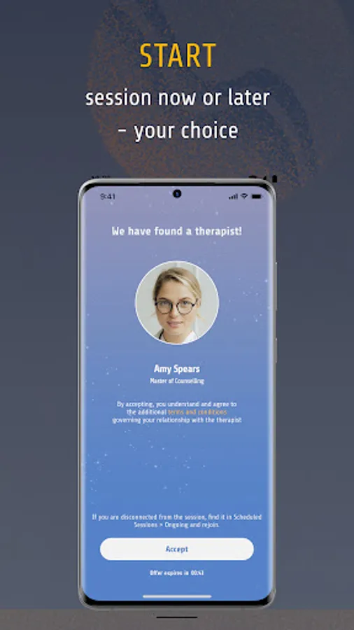 ON-DEMAND, that means that you may now hire a therapist anytime, anywhere - 24x7, live.