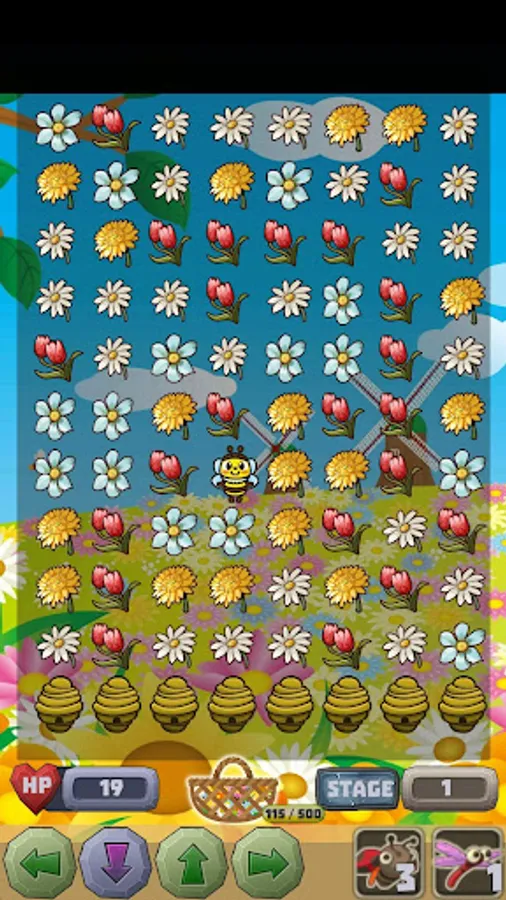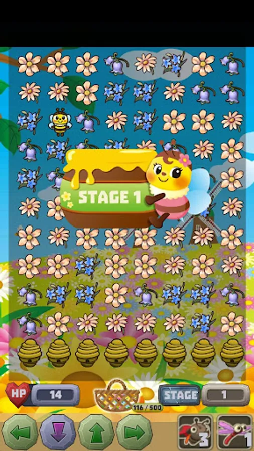If three or more same flowers are connected vertically and horizontally, they can be erased by touch.