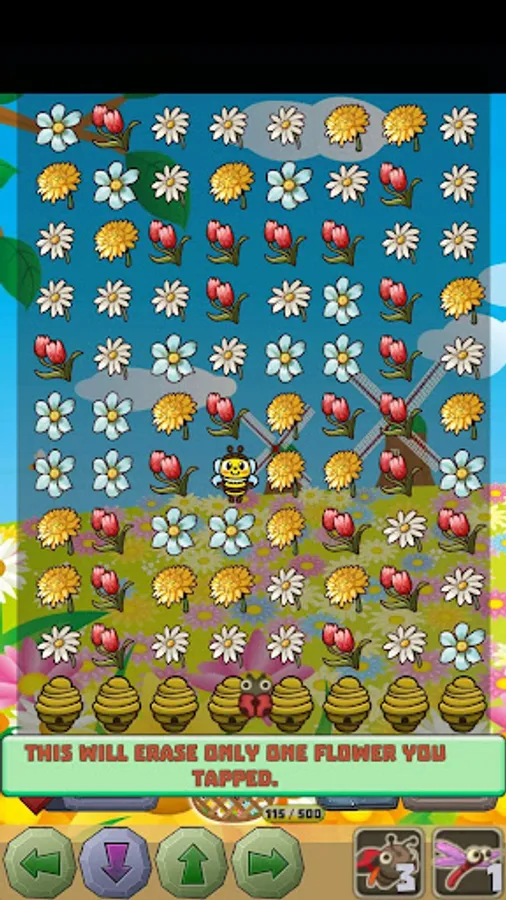 ladybird : It will erase one of the tapped flowers.