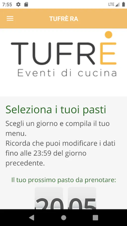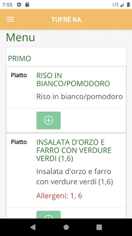 Once the credentials have been entered, the user will be offered a series of days with a series of bookable menus. Thanks to Tufré RA, the user is always informed about the ingredients used to make each menu, in order to be able to cope with any allergy or intolerance problems.