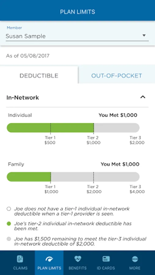 2. View Plan Limits and Accumulations: including your plan’s specific benefit plan limits, such as deductibles, out-of-pocket maximums and visit limits.