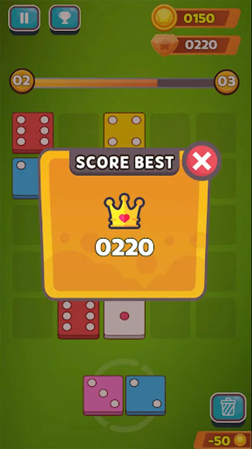Create and collect ruby gems by matching 3 dice of the same color to merge into higher values.