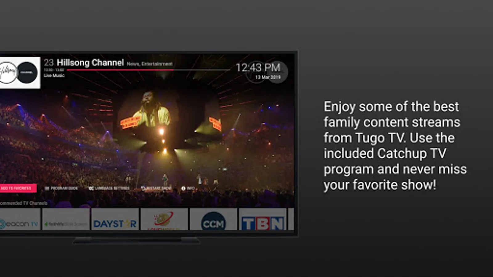 tugo TV is a streaming app that delivers live TV programming – giving users over 100 HDTV channels, which feature news, sports, entertainment, family, and faith-based programs. Watch tugo TV across all devices – on a phone, tablet, computer or TV.