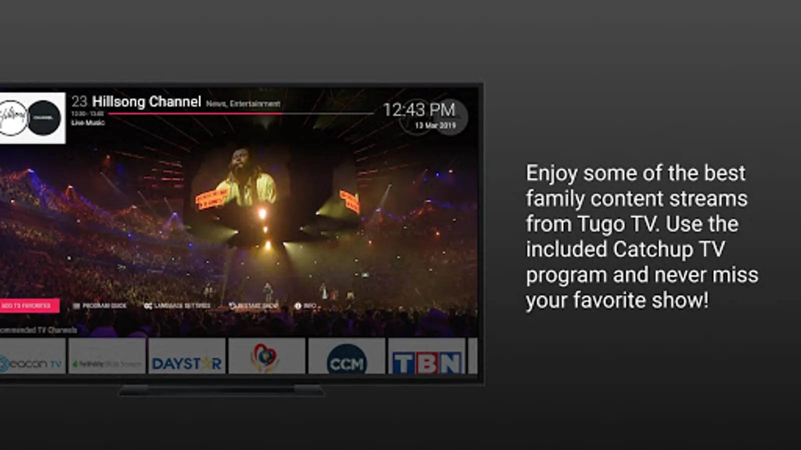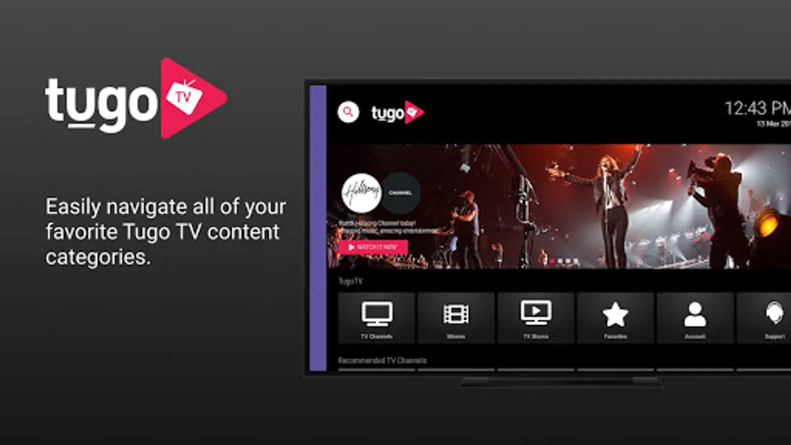 AndroidTV application for tugo TV's Christian Faith and Family content. tugo TV is a streaming app that delivers live TV programming – giving users over 100 HDTV channels, which feature news, sports, entertainment, family, and faith-based programs. Watch tugo TV across all devices – on a phone, tablet, computer or TV.