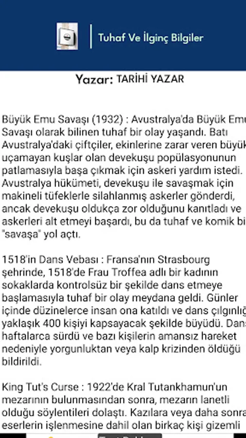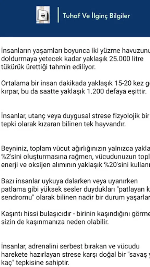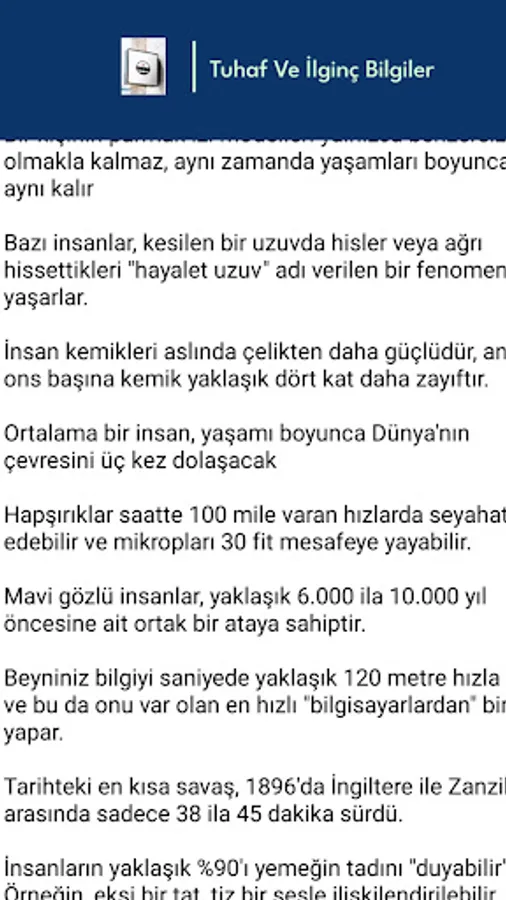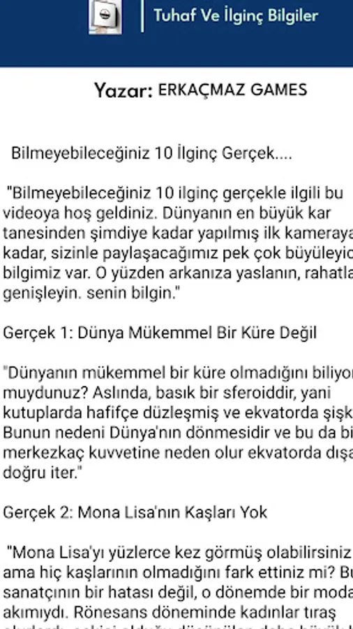 Uncovering the Extraordinary: Prepare to embark on a journey that will challenge your senses and spark your imagination. "Weird and Interesting Facts" is not another app; Your portal to discover the extraordinary aspects of our world. From the mysterious depths of history to the frontiers of science, this app is designed to engage, expand your knowledge and inspire your sense of curiosity.