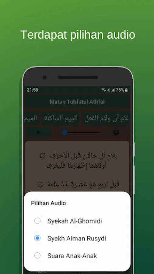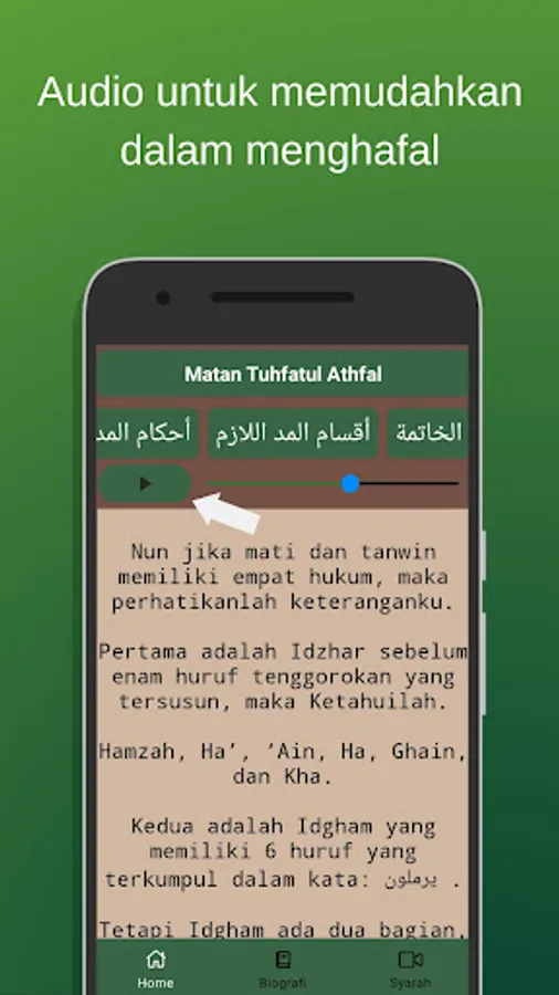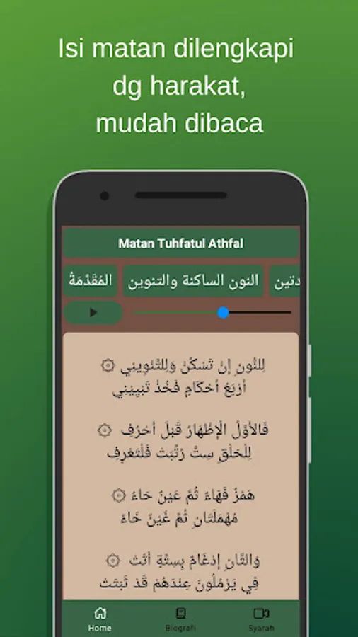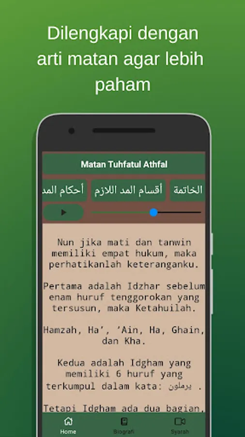 This simple application of matan tuhfatul athfal is equipped with meaning and audio