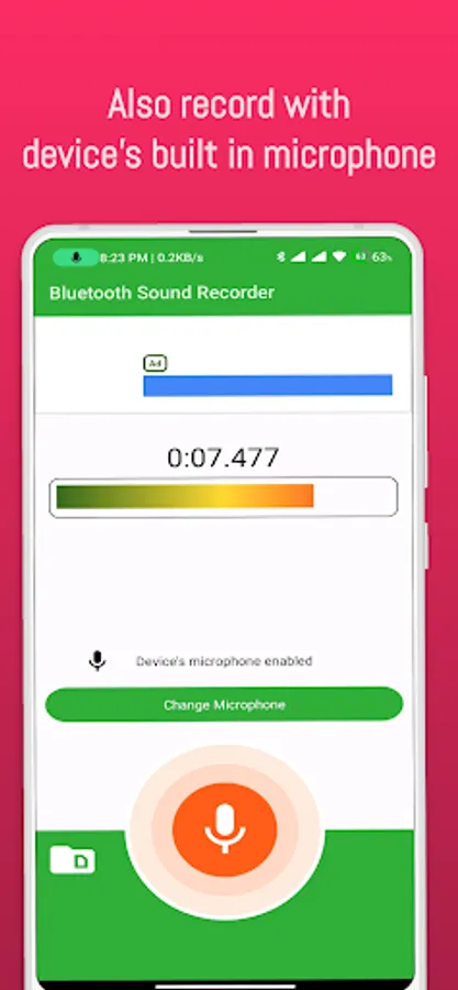 This app lets you record sound or voice using bluetooth earphone's microphone. This is helpful for different type of vloggers who needs clear voice recording with movability with the help of Bluetooth earphones or TWS ( True wireless earphone) .