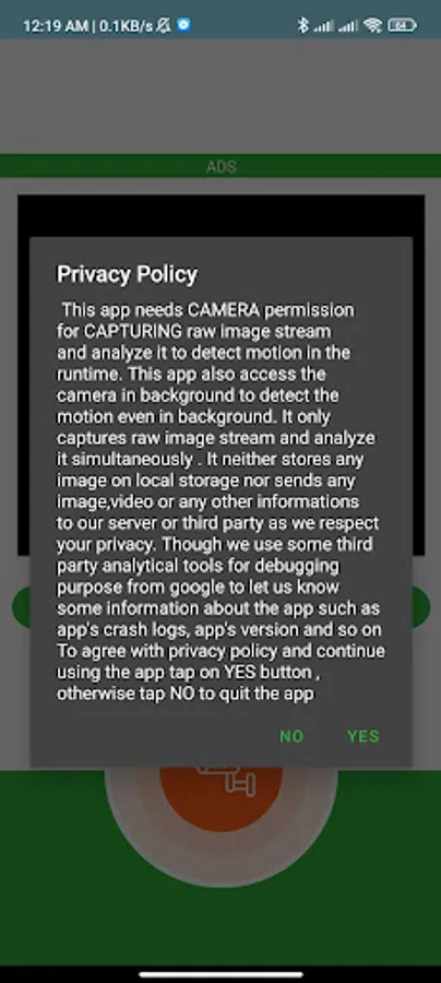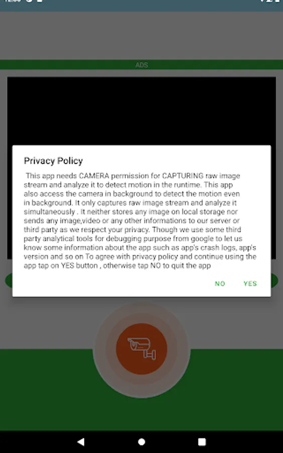 It's a simple movement detector that detects movements using device's camera . It captures and analyzes data simultaneously from camera and play an alarm if any movement detects.