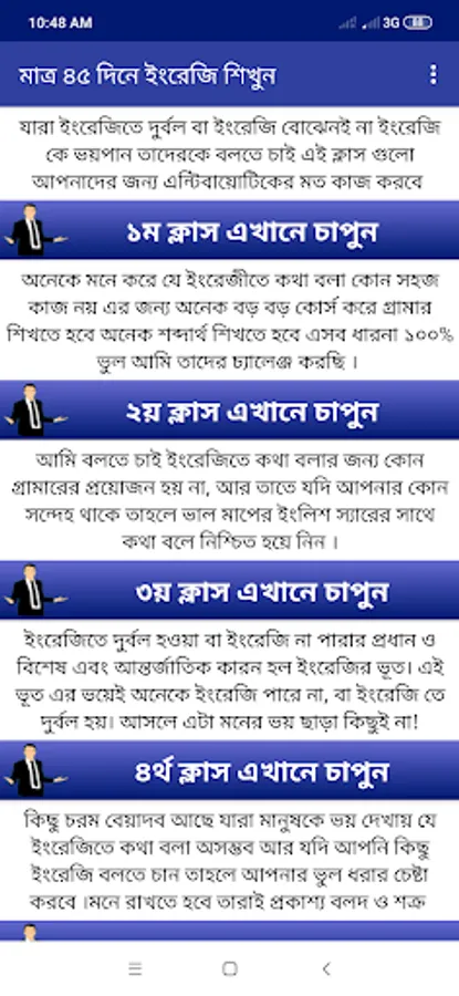 If you want to speak English in 45 days, then you will spend 3 days in each class. There is no reason for tension. The classes are very simple. Students of class 4-5 can do it.