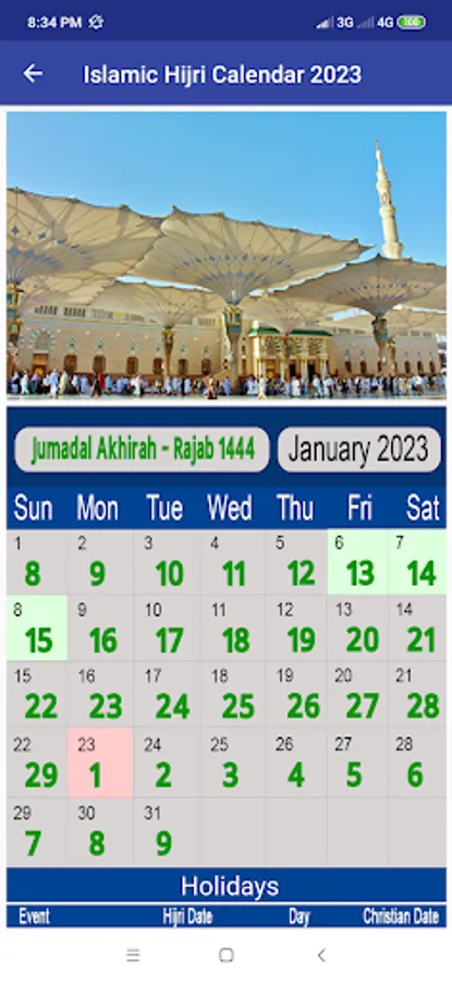 The Hijri calendar, also known as the moon Hijri calendar and (in English) the Islamic, Muslim or Arabic calendar, is a moon calendar in which a year consists of 12 lunar months of 354 or 355 days. This calendar is used to determine the exact days of Islamic holidays and events, such as the annual fasting period and the exact date of Hajj. Almost all Muslim-majority countries use the Gregorian calendar as their common calendar.
