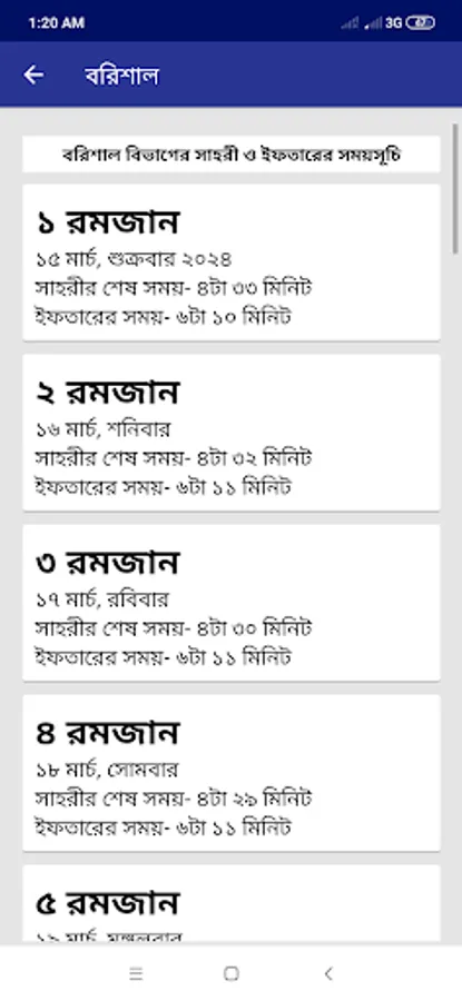 During Ramadan, too much work is required. This app is about Ramadan Calendar 2024 Sehri and Iftar Schedule 2024. In this app you will find the calendar of the holy Ramadan calendar 2024 Sehri and Iftar schedule 2024 together with the 7 districts.