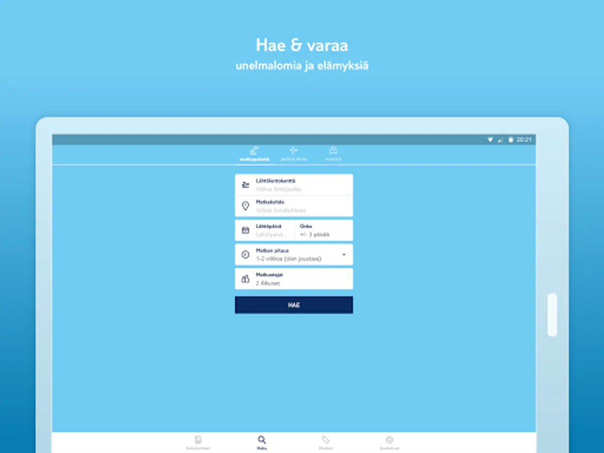 - Search for a holiday from a wide selection of travel, flights and hotels, book a trip and pay through the app