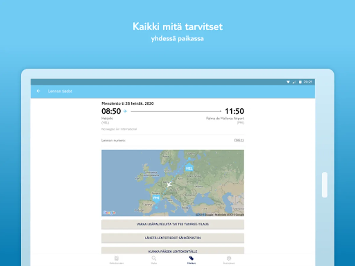 Through our holiday app, you can make tax-free purchases as well as book a seat, add legroom or luggage weight. (Applies to certain flights only).