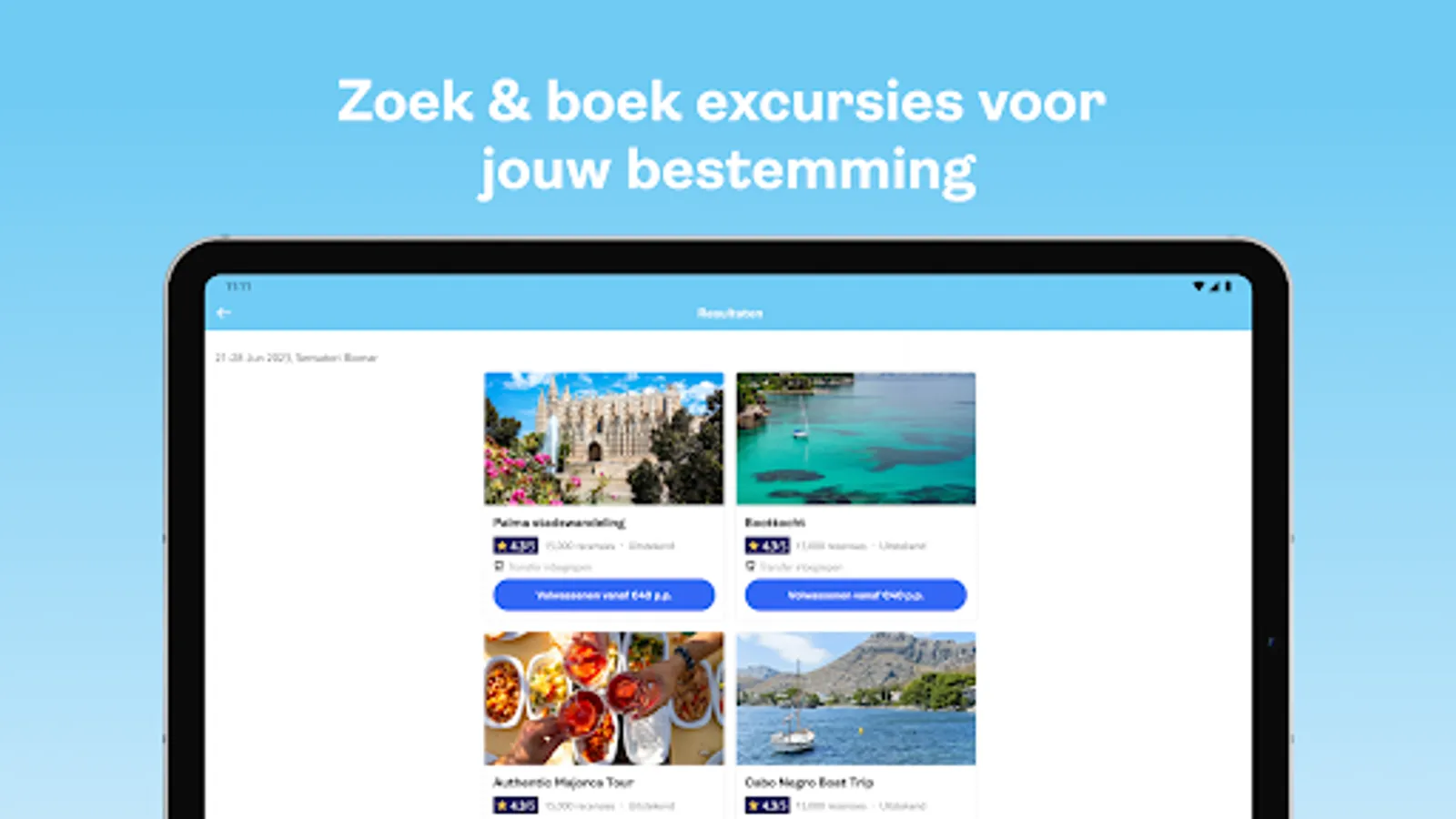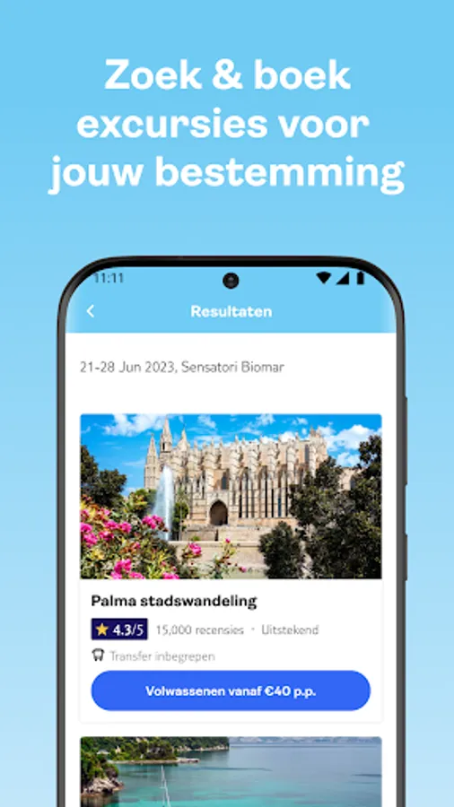 Via the app you can easily book the TUI Experiences from the palm of your hand - all trips available to you are loaded into the app. Select your TUI Experience from the list of available dates and times and consult all the necessary information. Once you have confirmed and paid for your trip, your tickets will be displayed in the app and also emailed to you.