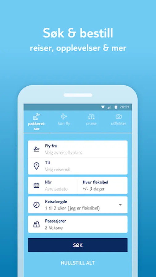 In our travel app, you can book tax-free and upgrade your flight, choose a seat, book extra legroom and extra luggage weight (applies to some flights).