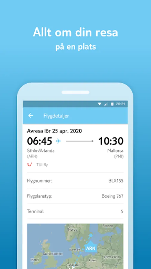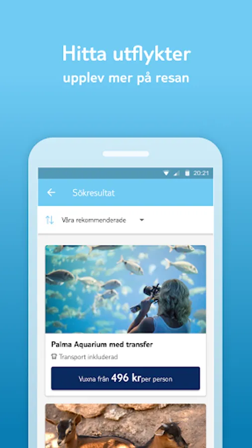 In the app, you can follow the countdown before your trip. You can also follow the weather forecast for your destination. There is also a travel guide where you can read about sights, beaches, shopping and restaurants at your destination.