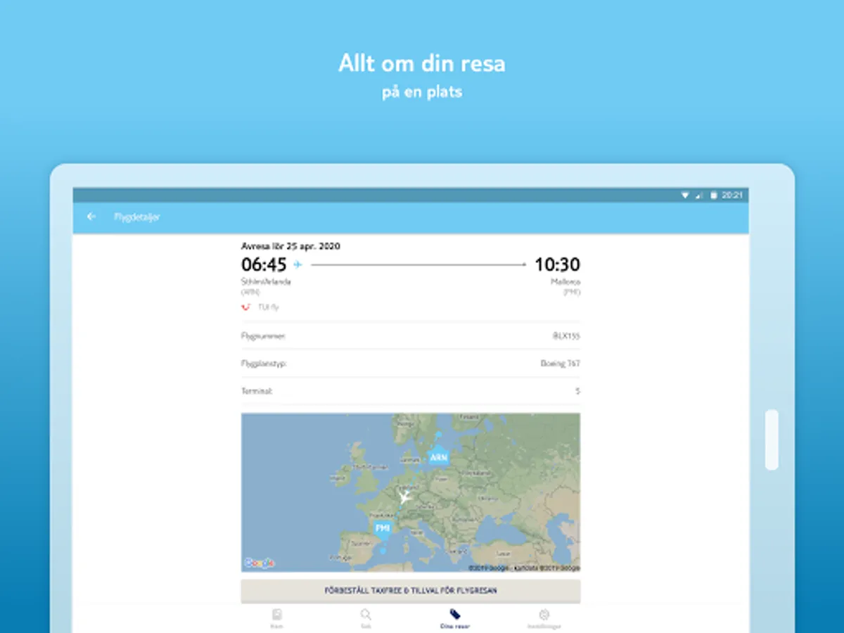 In our travel app, you can order tax-free and upgrade your flight - choose a seat, book extra legroom and extra luggage weight. (Applies to certain flights).