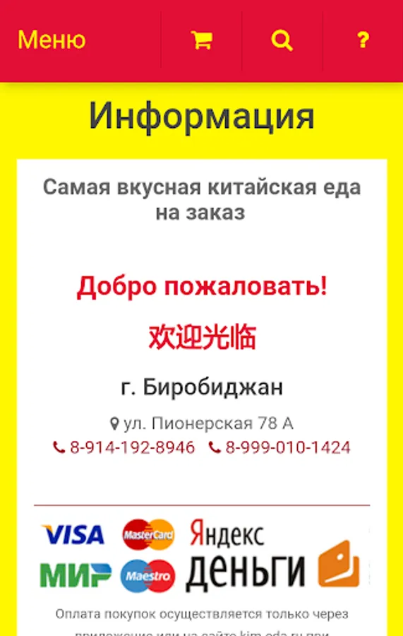 Choose and order Chinese food in the KimEda app. Delivery available