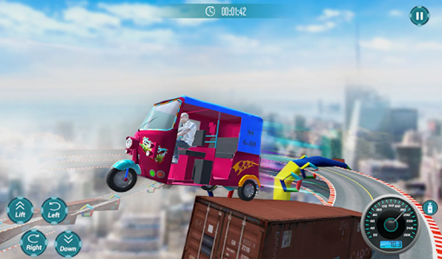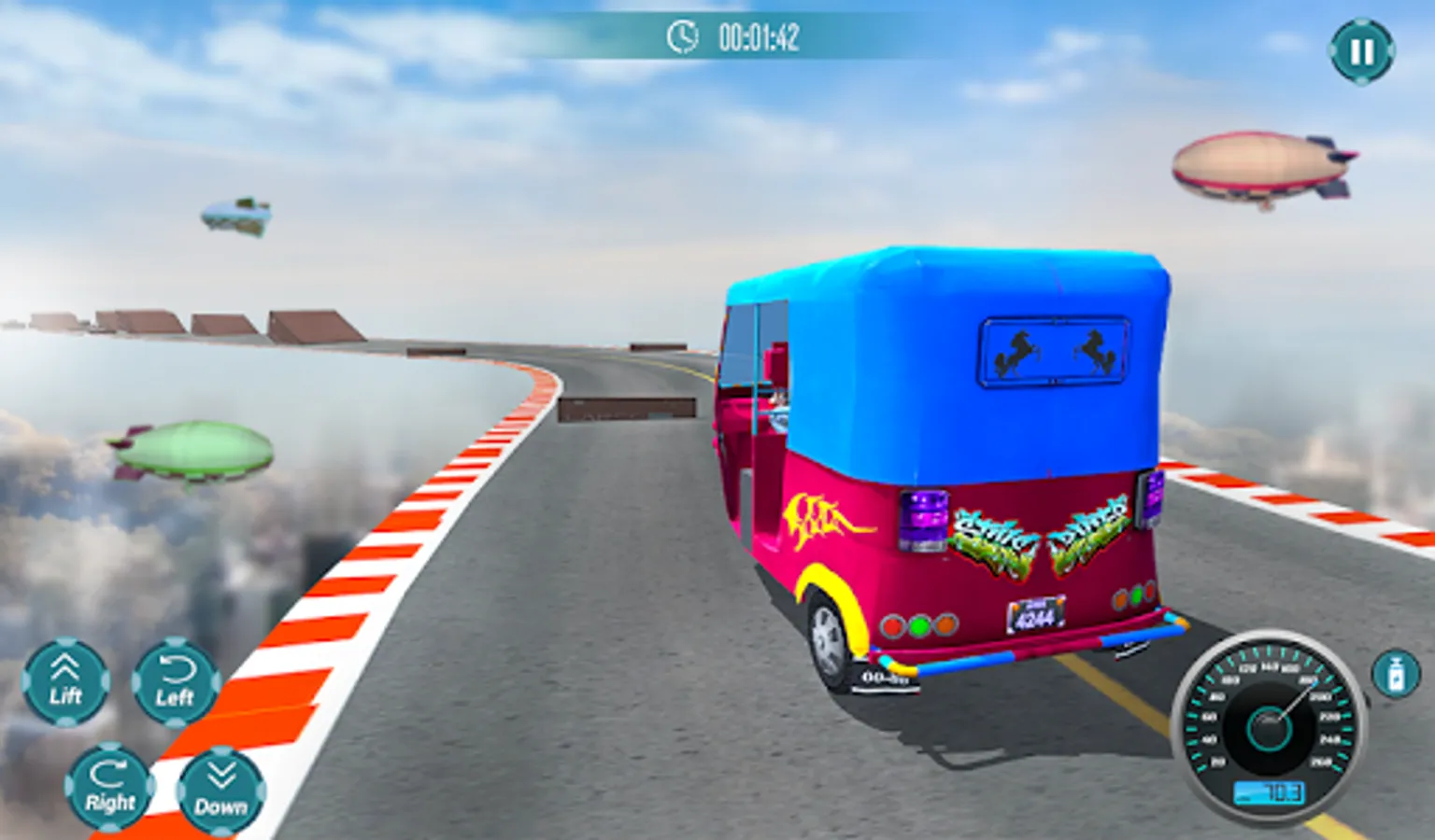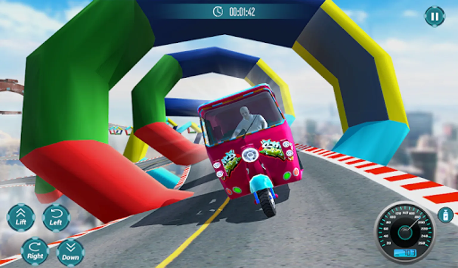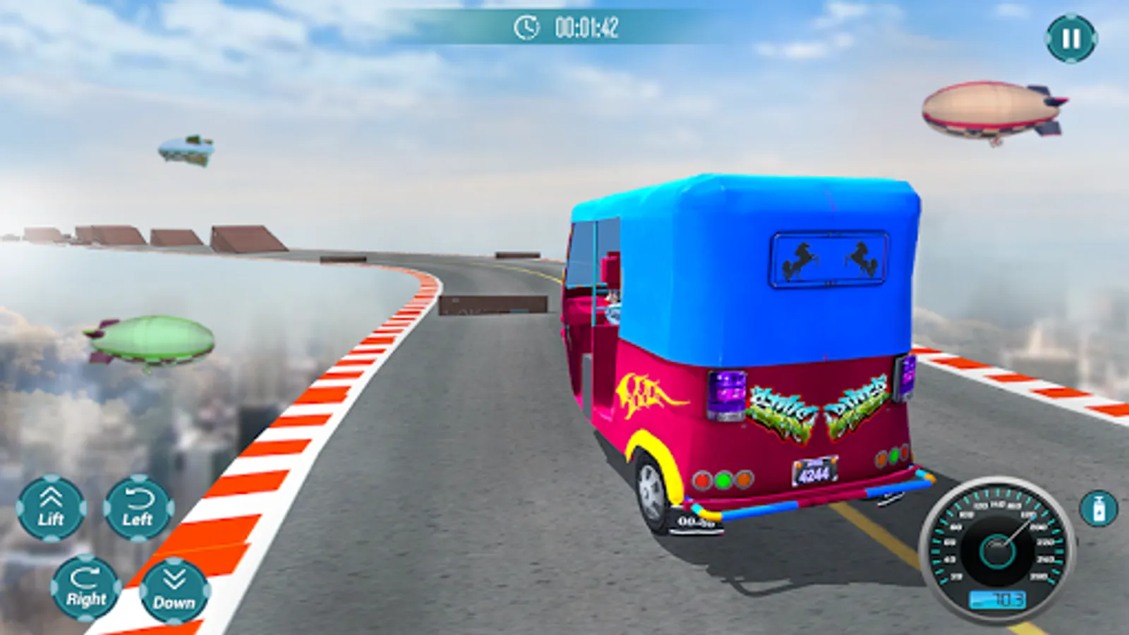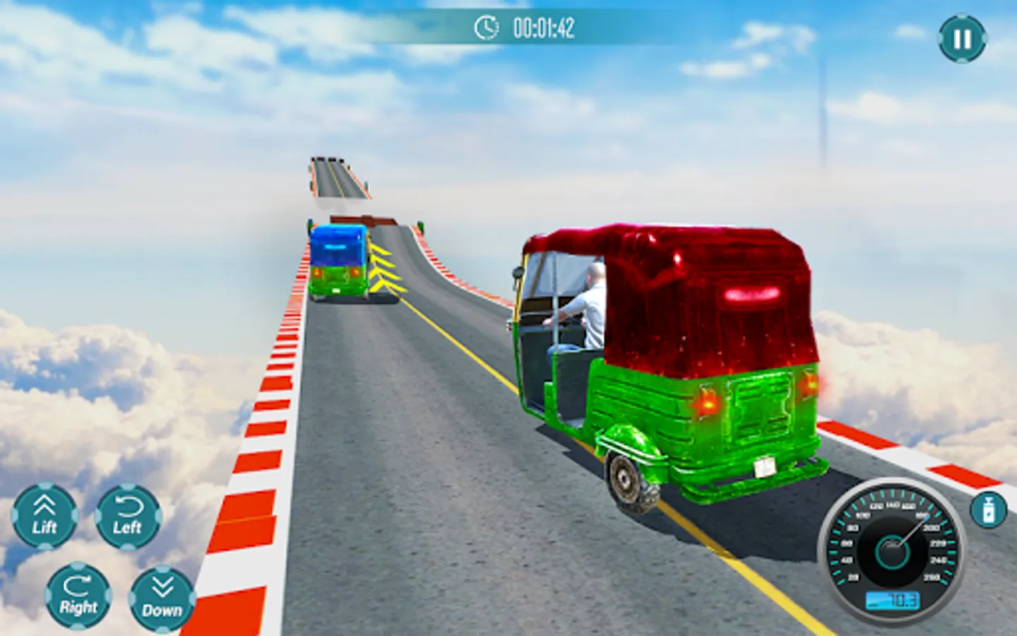 In Tuk Tuk Rickshaw Simulator - Sky Climbing Game, be the master of impossible driving rickshaw cascades at fast speed race and keep the passion of fast speed rickshaw car stunts. Rickshaw drive on rickshaw car simulator highways with your impossible rickshaw driving skills and be ready in rickshaw driver game to make your impossible rickshaw car dreams come true. Perform extreme fun game stunts with a real rickshaw car drive simulator impossible rickshaw car on mega ramp stunt tracks. Get daily rickshaw car stunt rewards and special rickshaw car free driving offers to perform impossible rickshaw car scary ramp stunt. Show off your car driving master skills and have a free gift to enjoy more rickshaw car. In rickshaw driver game, several modern impossible rickshaw racing car with balanced hot wheels are waiting to unlock in the multiple modern rickshaw garage.