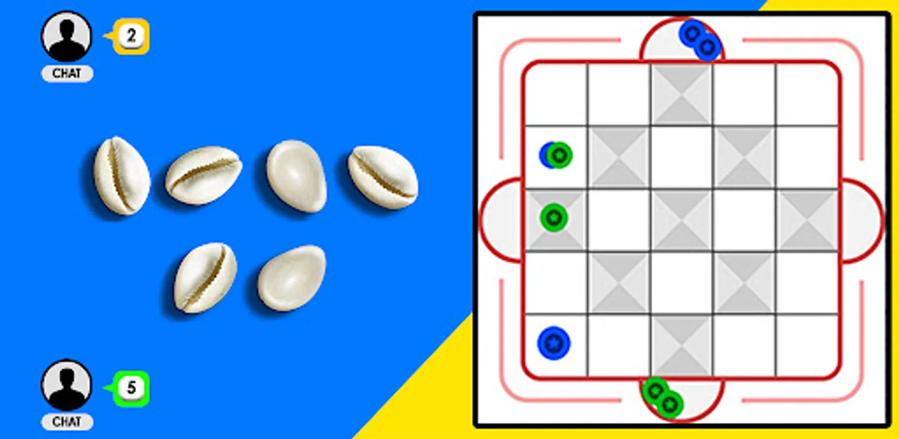 4. Each player owns 4 pawns. The movement of the pawns is determined by the throw of 4 cowries.