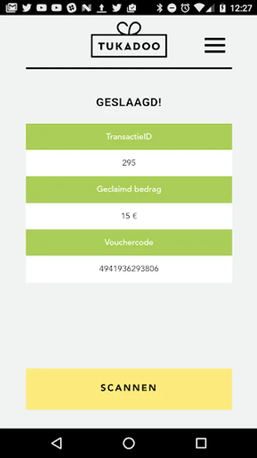 Through the Tukadoo scanner app you can easily scan the received Tukadoo vouchers (E-Tukadoo / Tukadoo Card / Tukadoosje) and redeem immediately.